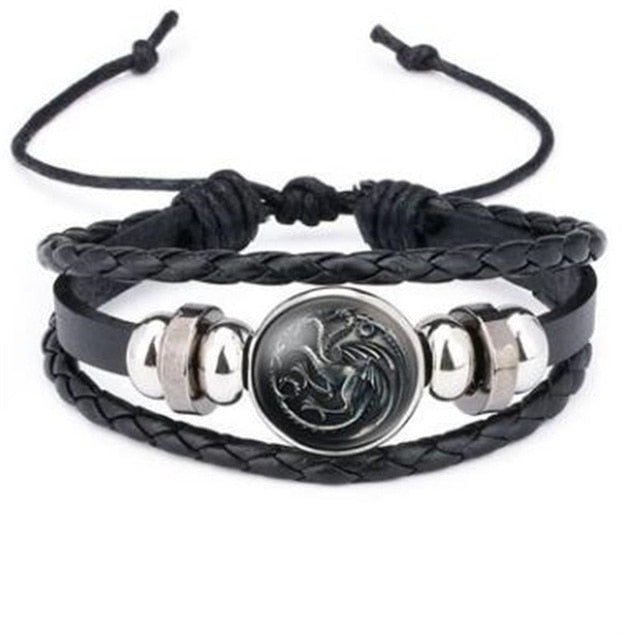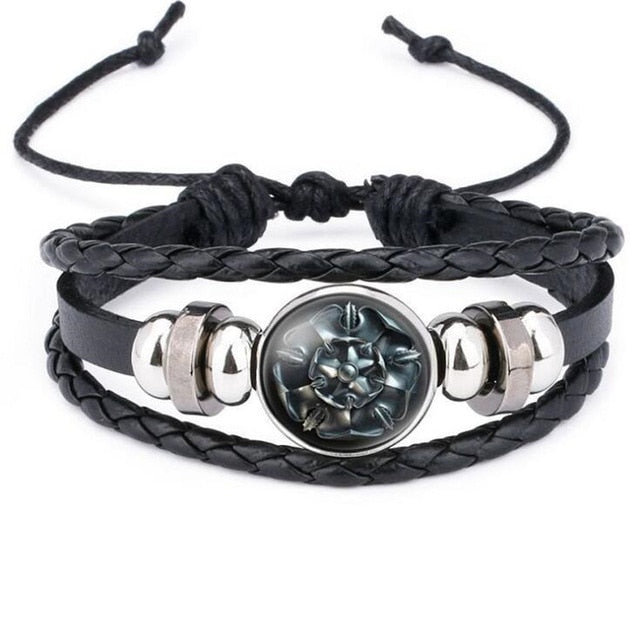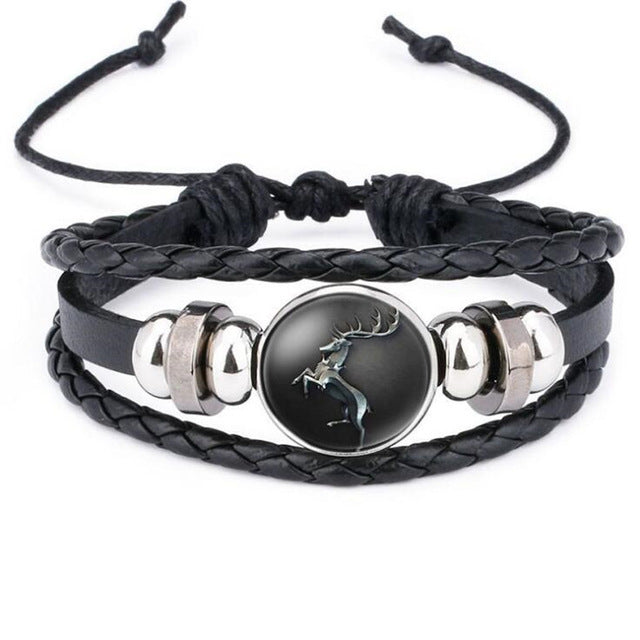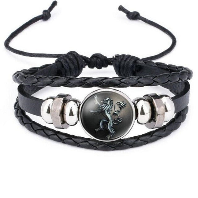 Hot New Game of Thrones Bracelet Cosplay Costumes Badge Stark Direwolf 9 Family Logo Black Gem Leather Bracelet Small Gift